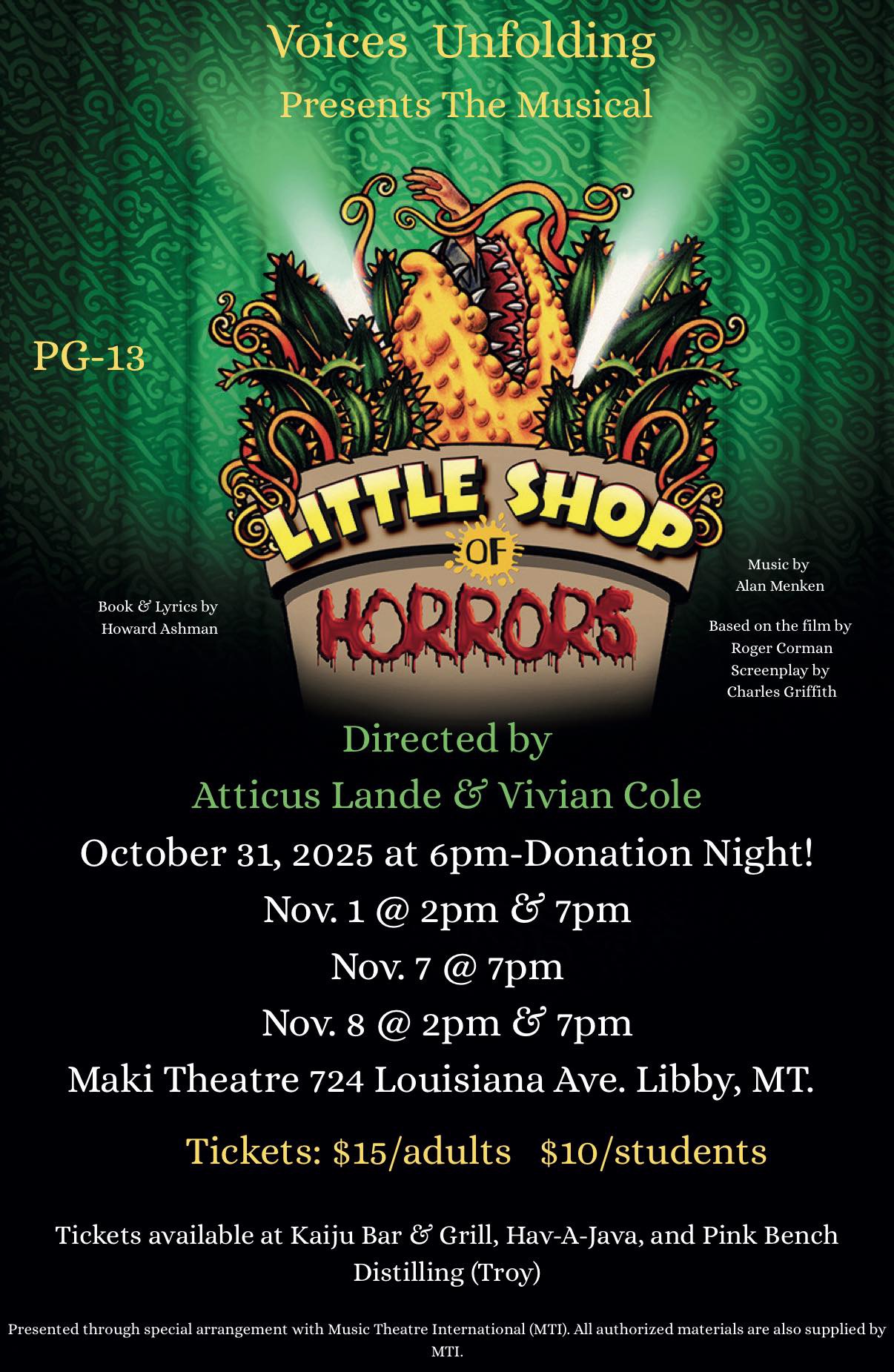 Voices Unfolding presents: The Musical, Little Shop of Horrors   October 31: 6pm (DONATION NIGHT) November 01: 2pm & 7pm November 07: 7pm November 08: 2pm & 7pm   Tickets […]